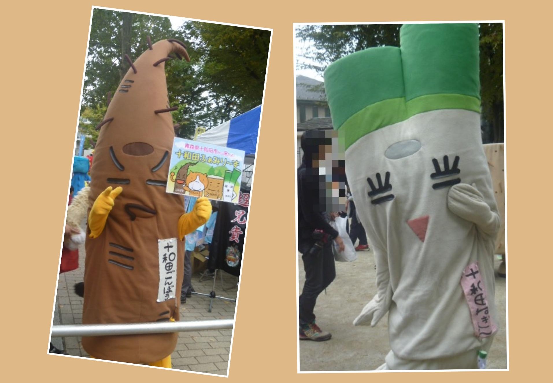 こちらの写真は、2014年、東京の高円寺駅付近で行われた「高円寺フェス 2014」より、(左側の)「十和田にんにん」、(右側の)「十和田ねばっち」の登場です。