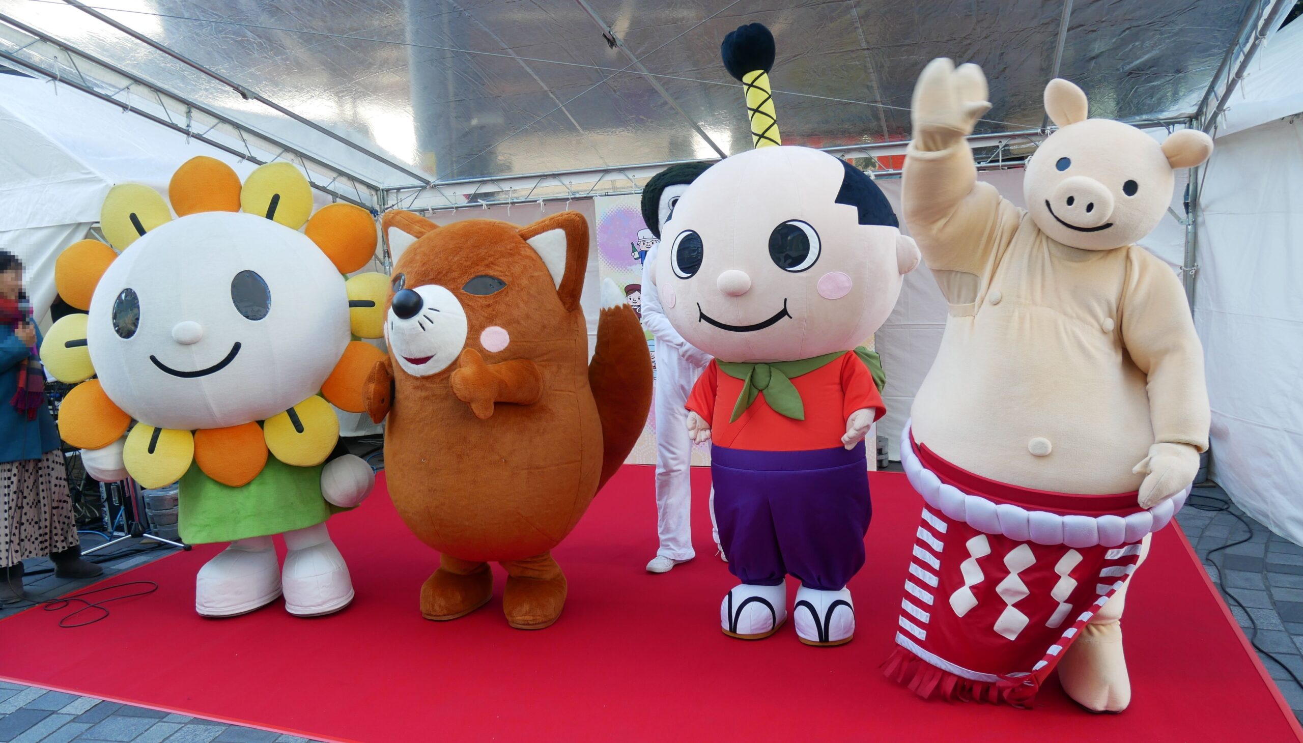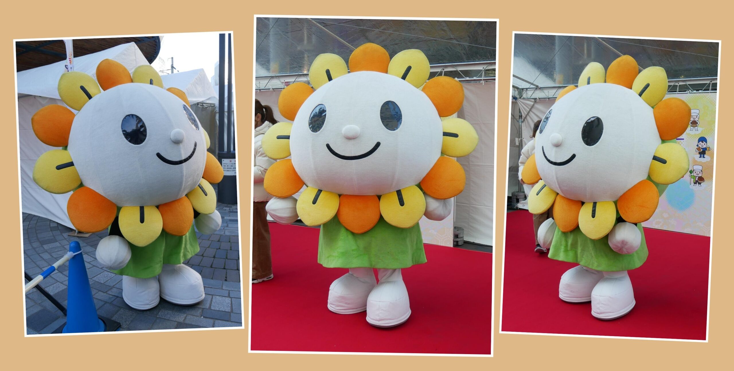 こちらの写真は、2024年に「有楽町駅前広場」で開催された「こってりだけじゃない。 ディスカバー愛知フェア」より、「あさぴー」の登場です。花びらの部分の色は紅茶をイメージしているのかな?気になっています。