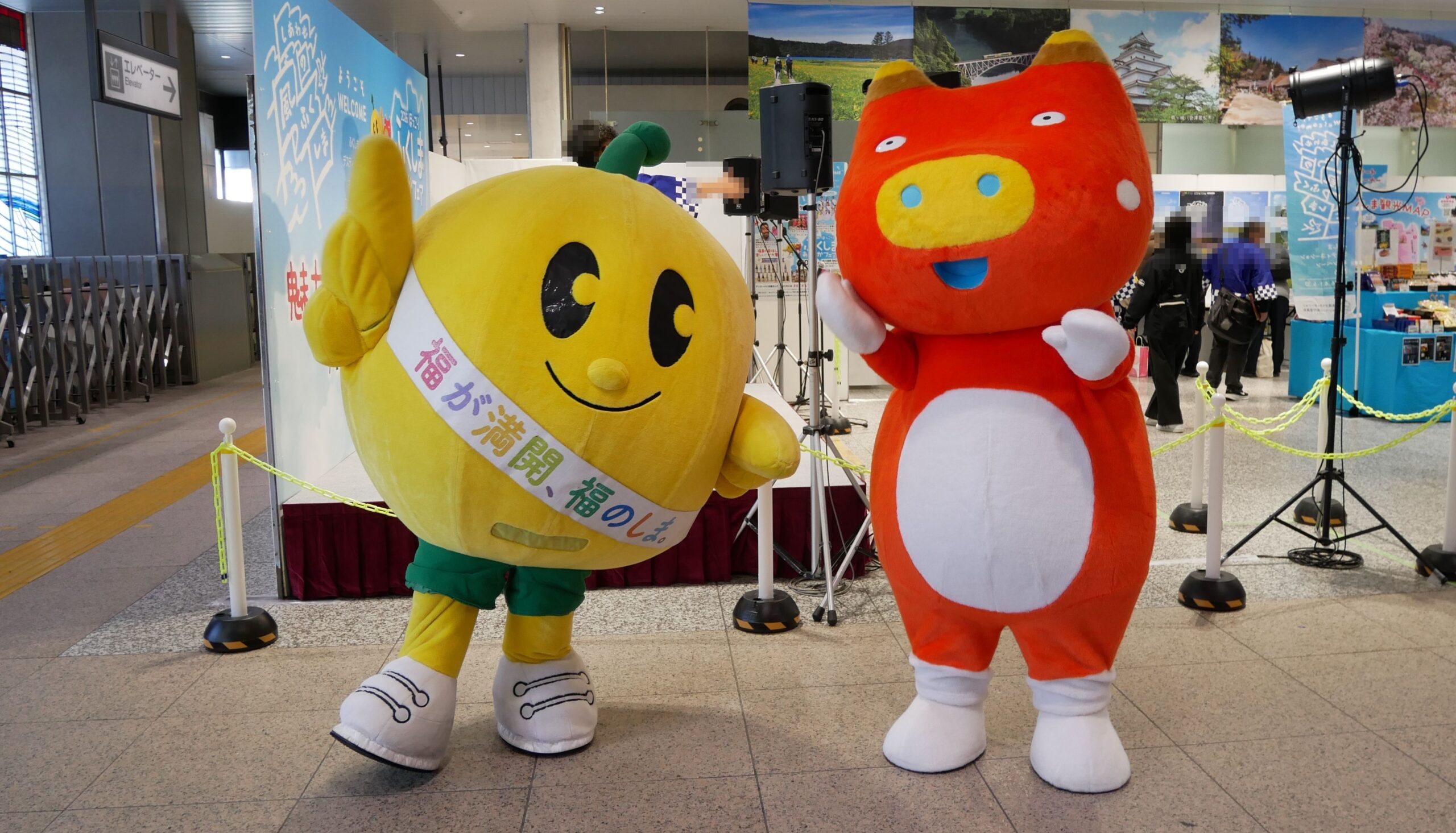 こちらの写真は、JR大宮駅改札外西口イベントスペースで開催された「2026ほっこりふくしまあったかフェア」より、(右側の)「キビタン」(福島県)と福島県を代表するキャラクター同士の夢のコラボです。
