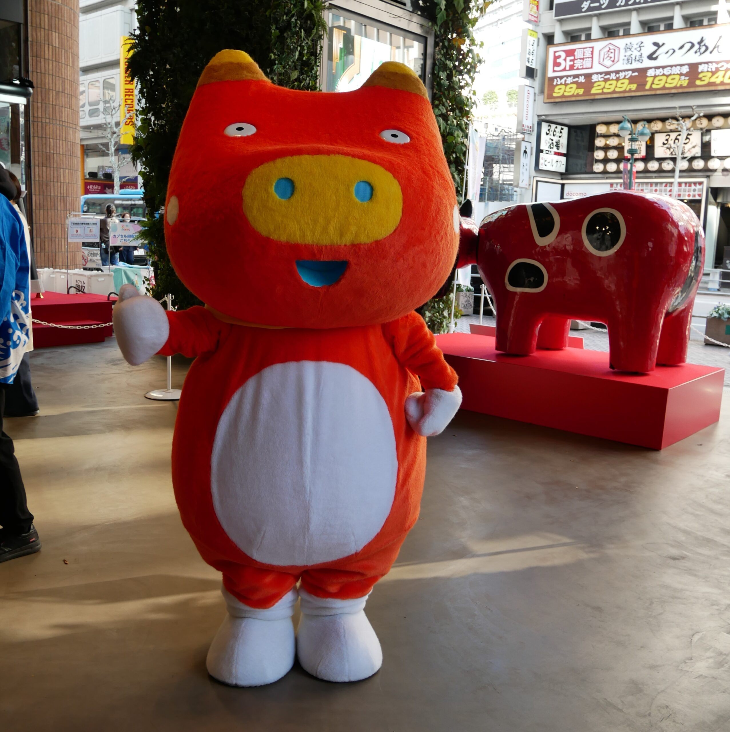 こちらの写真は、東京渋谷にある渋谷モディで開催された「知って、学んで、⾏ってみよう!ふくしま@渋谷モディ」より、「ベコ太郎」の登場です。