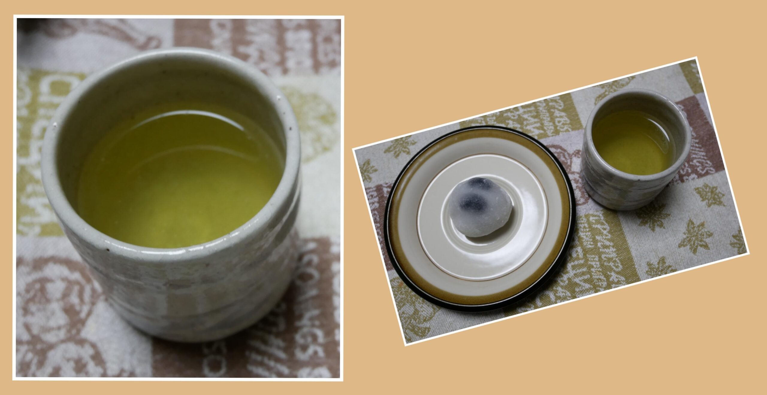 いろいろなお菓子と一緒に頂きました。最初は豆大福と一緒に頂きました。