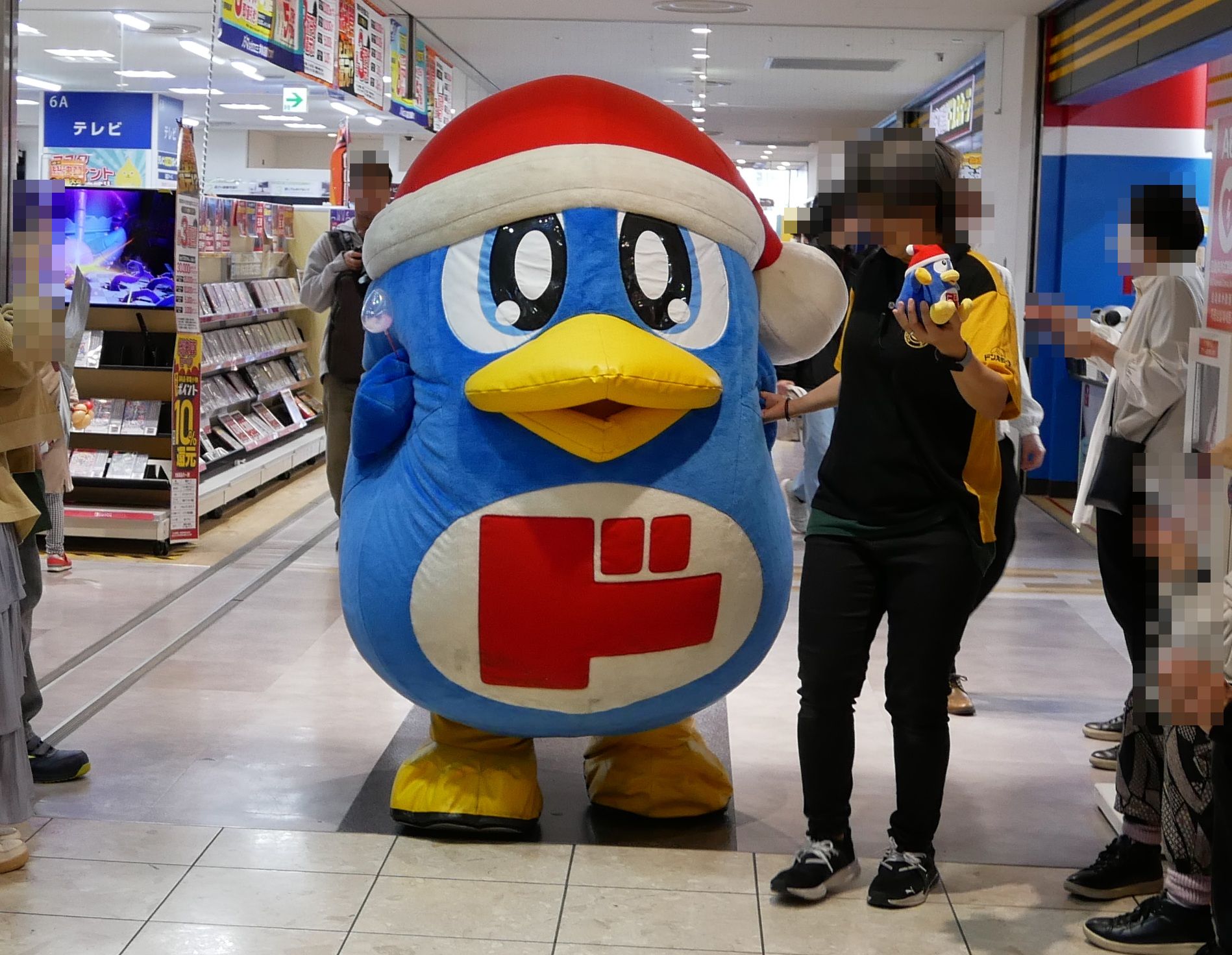 下の写真は、2025年に田無アスタ専門店街で行われた、「キャラクターFM祭り」より、「ドンペン」の登場です。