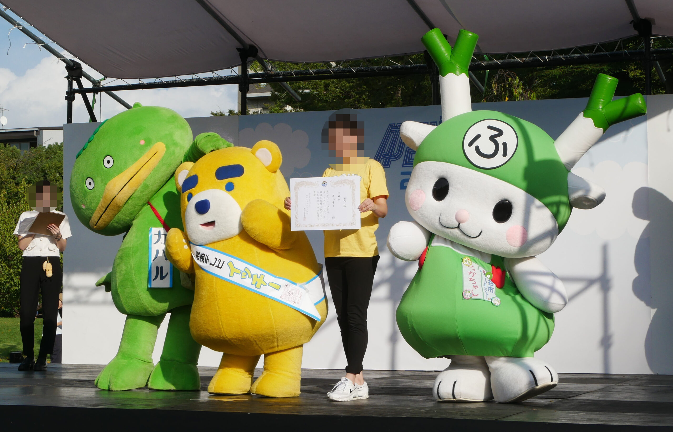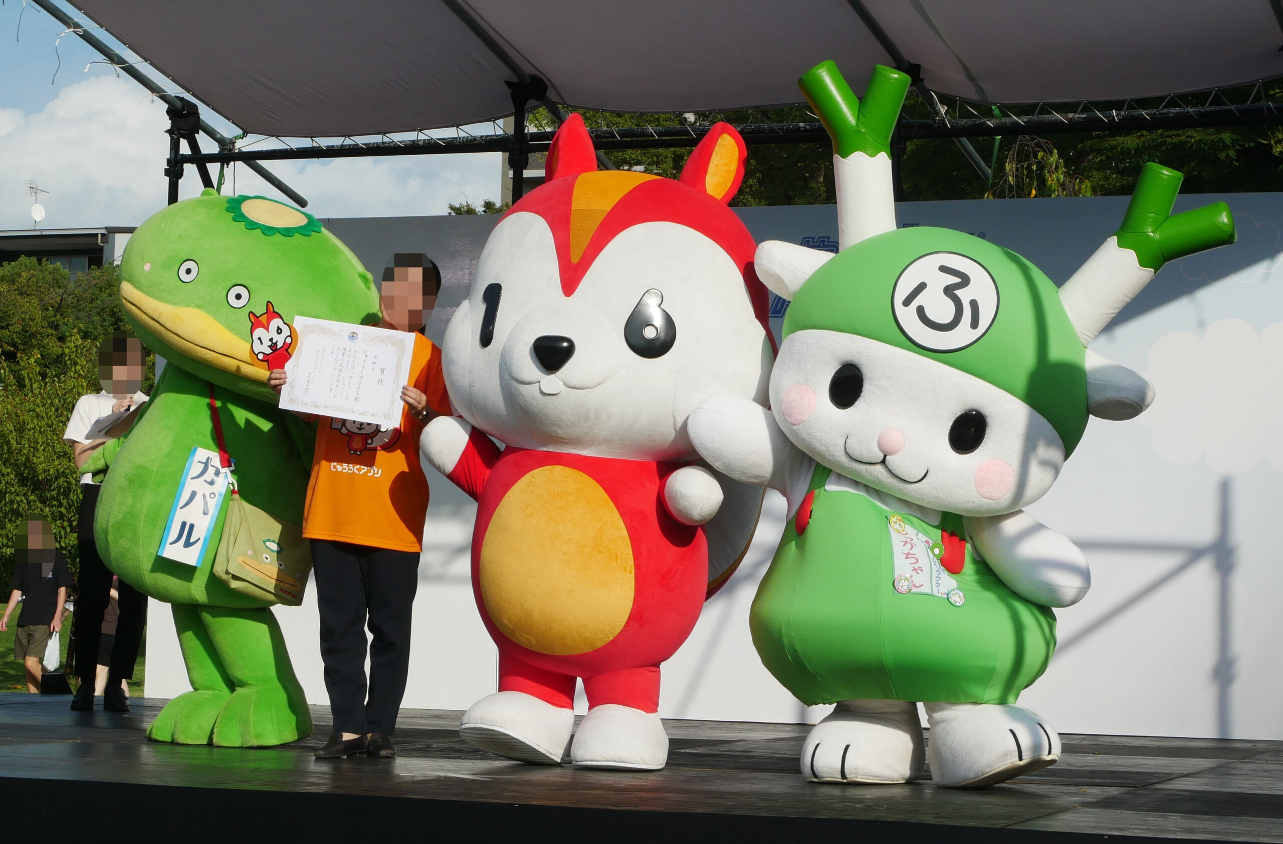 こちらの写真は、2025年に東京墨田区にある隅田公園で開催された「ゆるバース2025」の表彰式より、第67位を獲得した(中央の)「じゅうろくアプリス」(十六銀行)と一緒に記念撮影です。