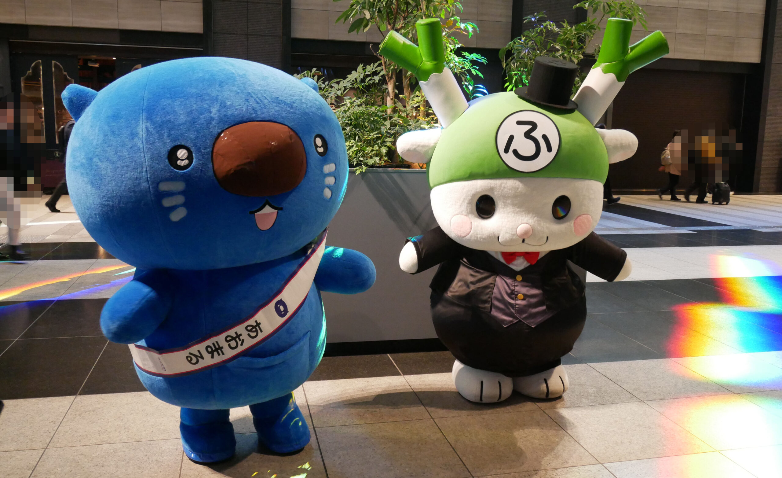 こちらの写真は、2023年に東京駅の近くの大手町タワーで開催された、「深谷物産展」より、(左側の)「あおまる」(みずほフィナンシャルグループ)とのコラボです。