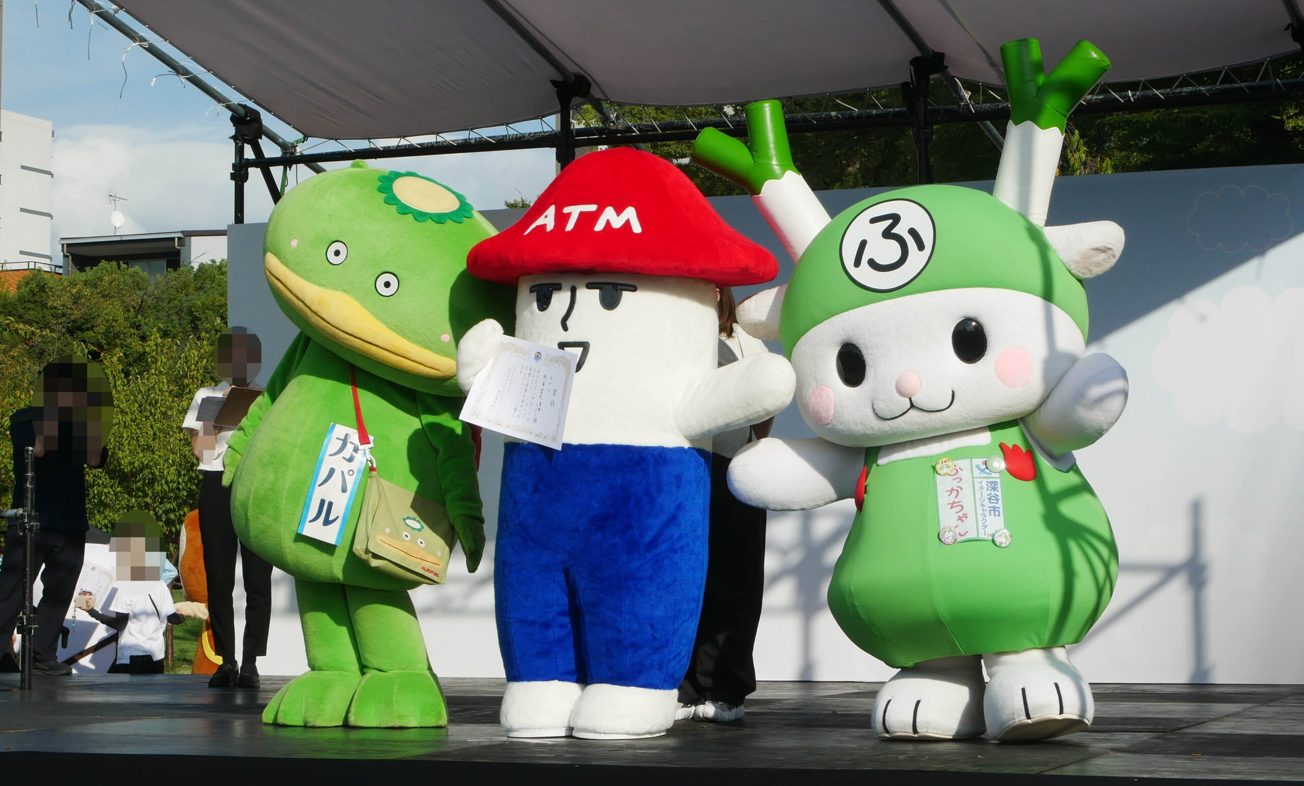 こちらの写真は、2017年に埼玉県羽生市で開催された「世界キャラクターさみっとin羽生」より、ここでは「ふっかちゃん」の右隣の「えび~にゃ」(神奈川県海老名市)も参加し、ゆる党全員集合です。