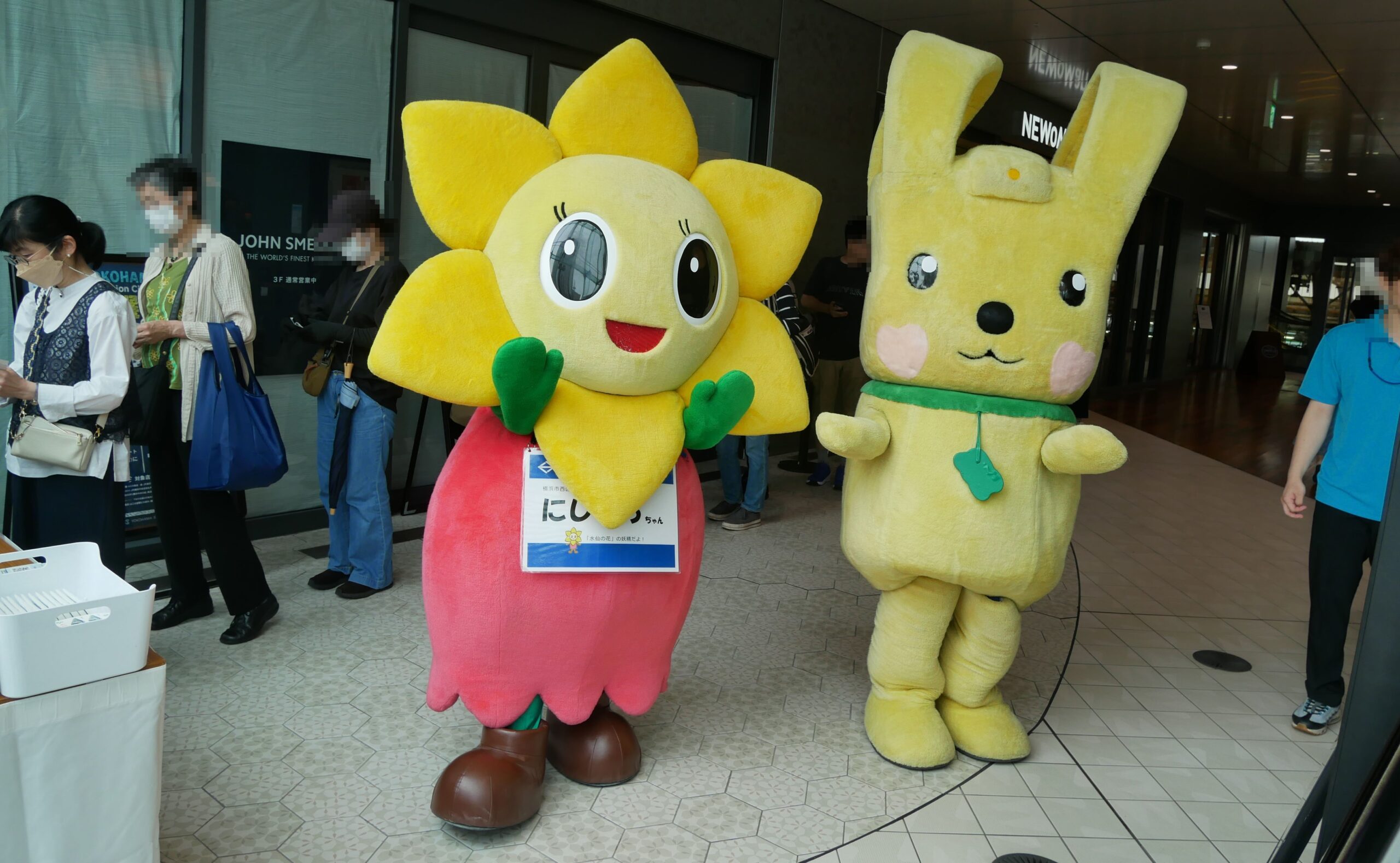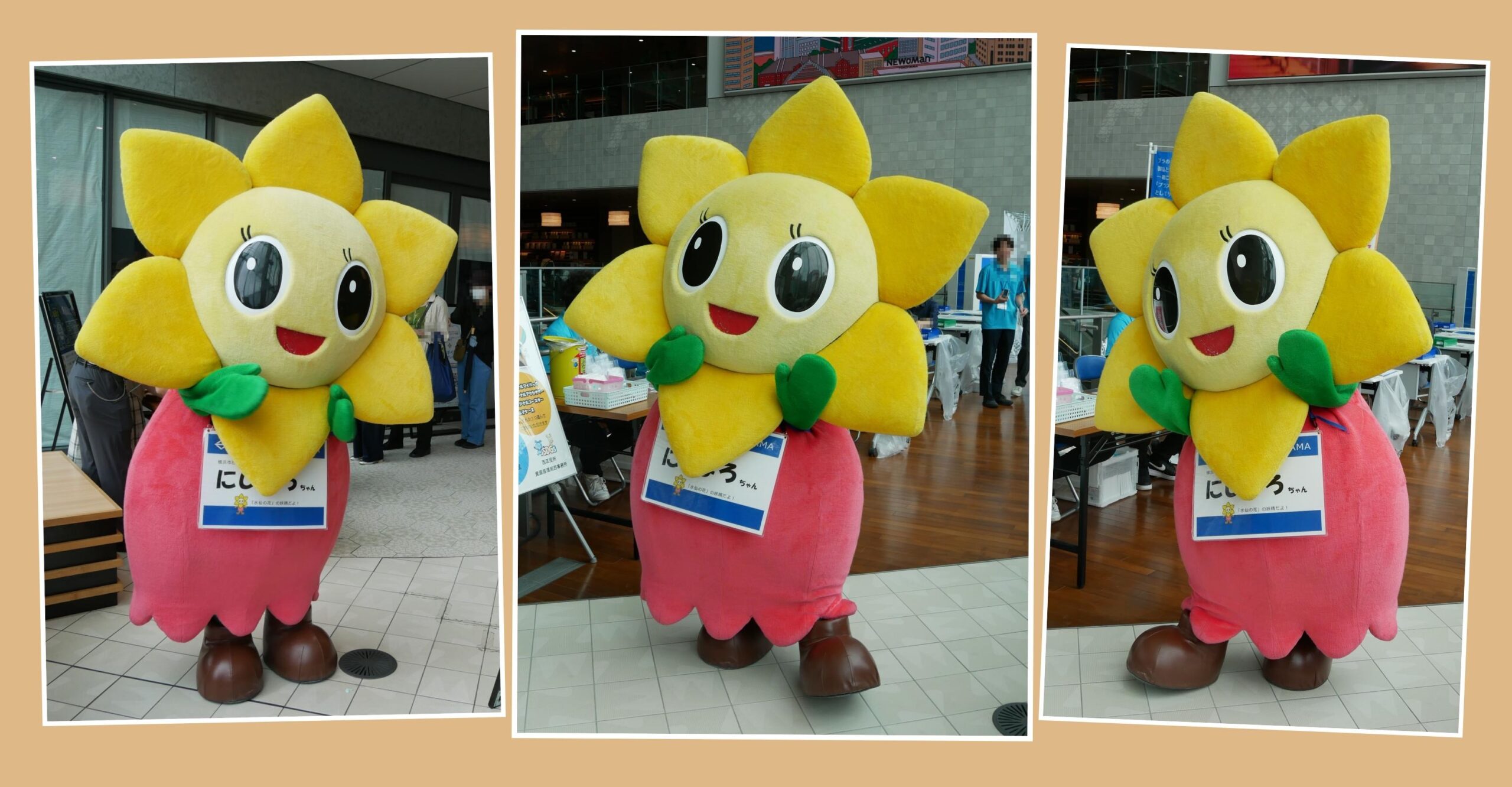 こちらの写真は、2025年に神奈川県横浜市にあるJR横浜タワー アトリウム2階で開催されたマスコットキャラクターイベントに「にしまろちゃん」の登場です。