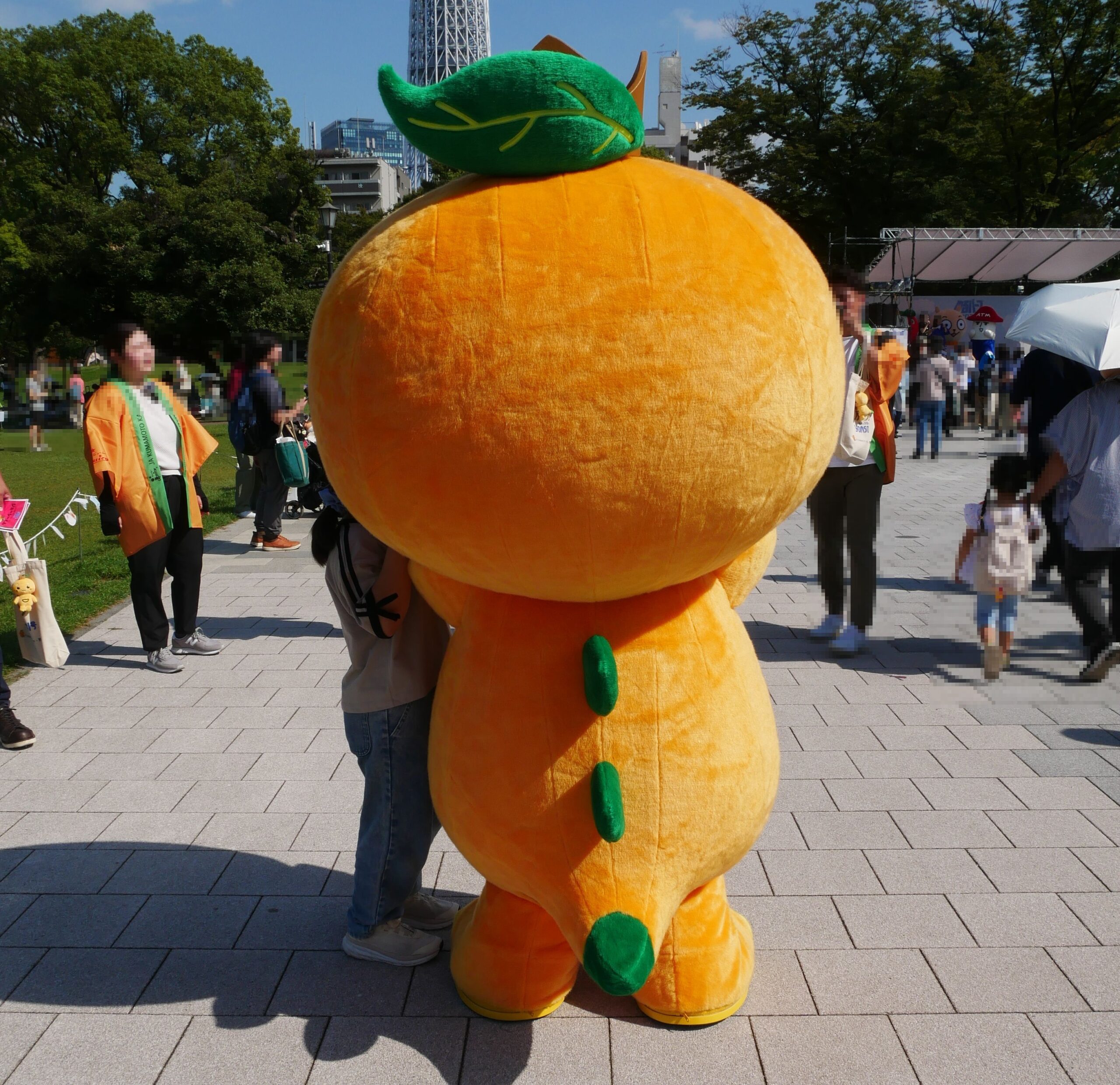 こちらの写真は、2025年に東京墨田区にある隅田公園で開催された「ゆるバース2025」より、「ジューシーくん」の登場です。