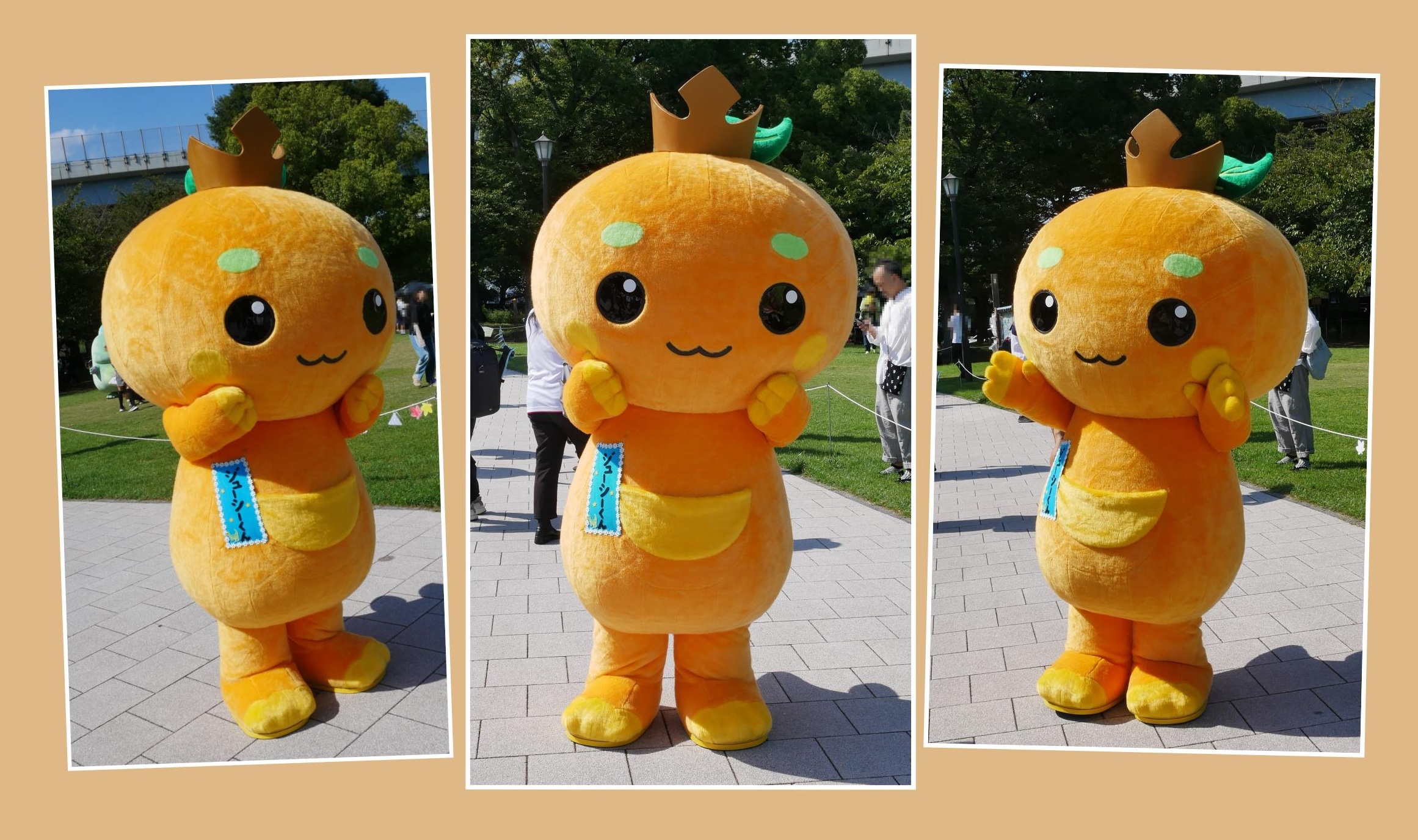 「ジューシーくん」のポーズ集です。著者が気に入った写真を3枚厳選しました。