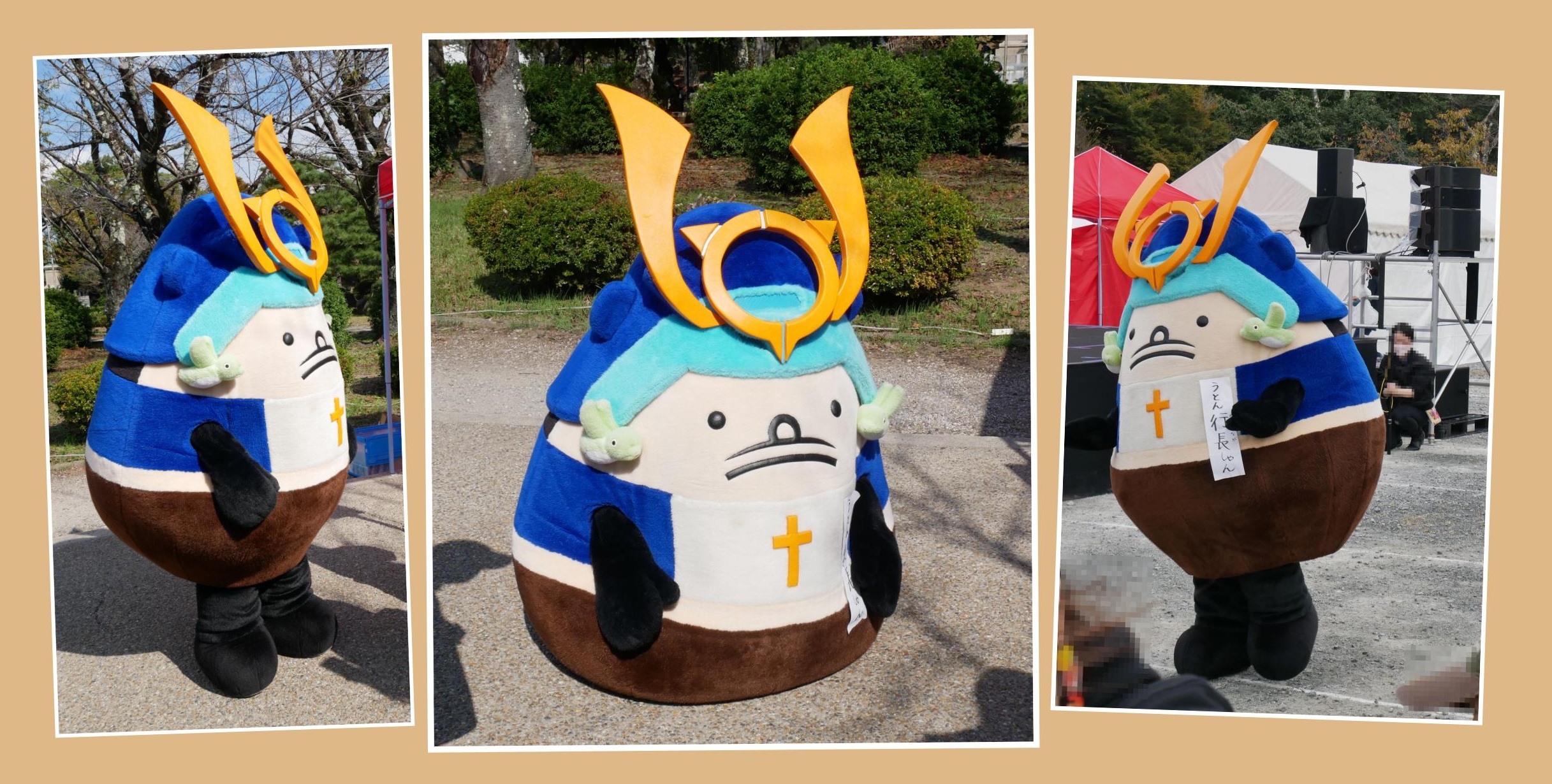 「うとん行長しゃん」のポーズ集です。著者が気に入った写真を3枚厳選しました。
