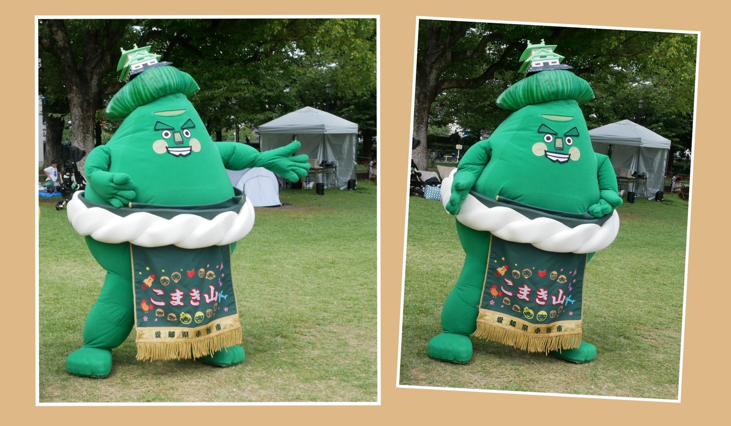 「こまき山」は、愛知県小牧市のシンボルである小牧山をモチーフとした小牧市マスコットキャラクターです。小牧山城を築城した織田信長は相撲が好きだった為、お相撲さんと小牧山をミックスしたキャラクターが誕生しました。