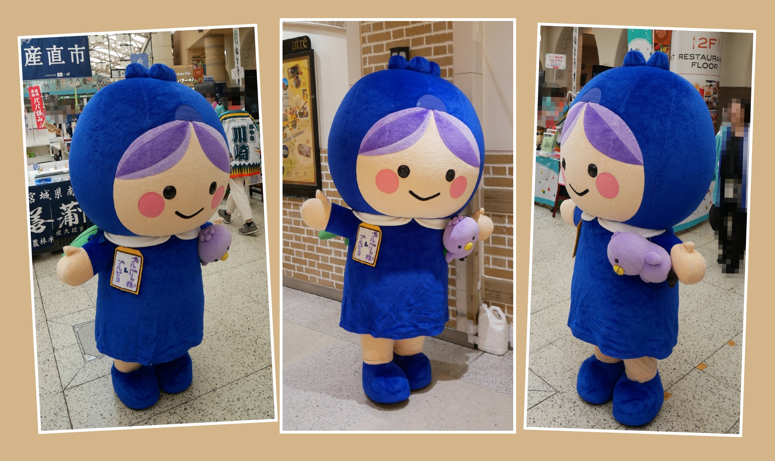 こちらの写真は、2024年に上野駅で開催された「宮城産直市」より、「ブルベリッ娘とブルピヨ」の登場です。
