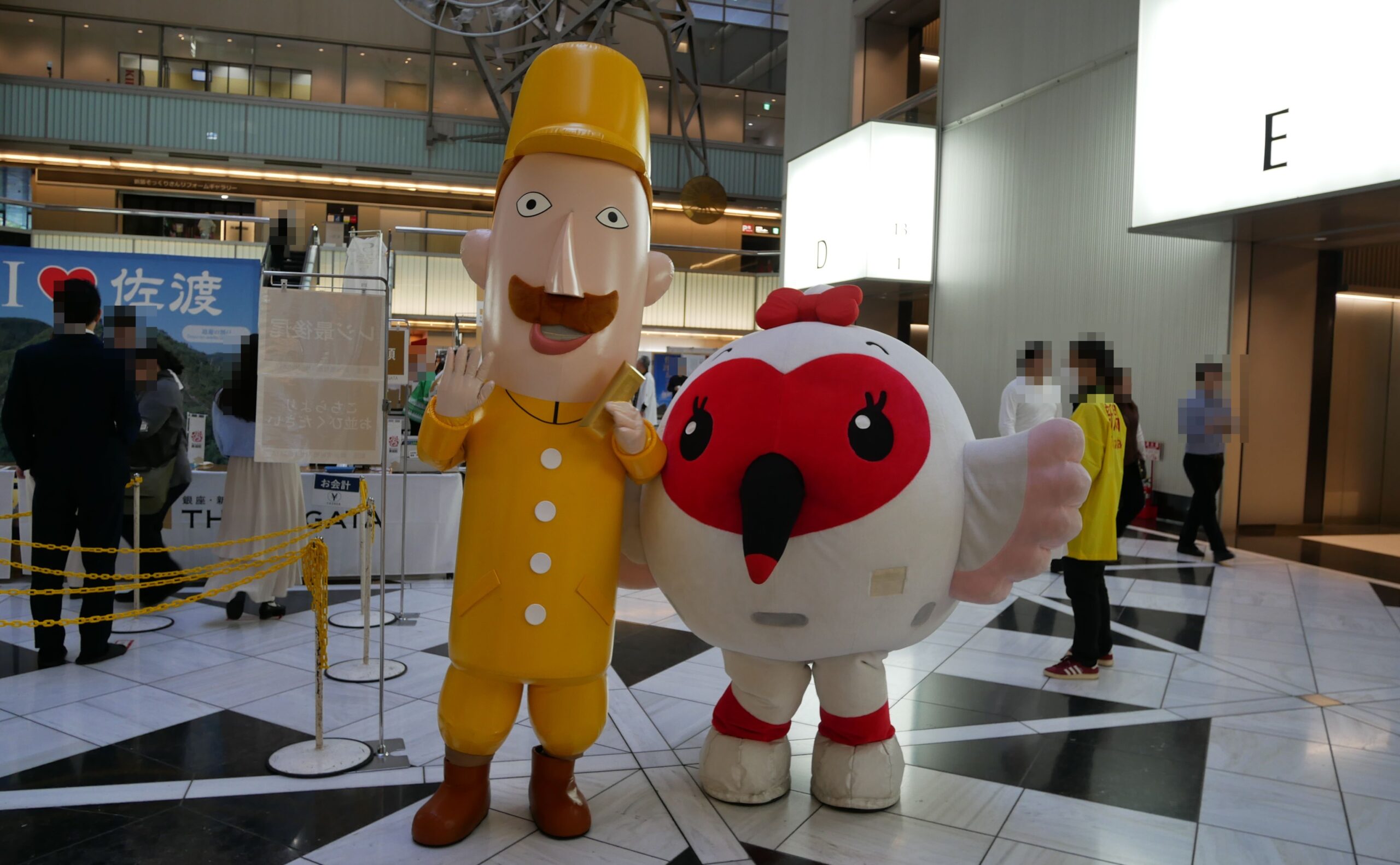 こちらの写真は、2019年に東京国際フォーラムで開催された、全国の町村の特産品をアピールするイベントである、「町イチ!村イチ」より、「タイボーくん」の登場です。