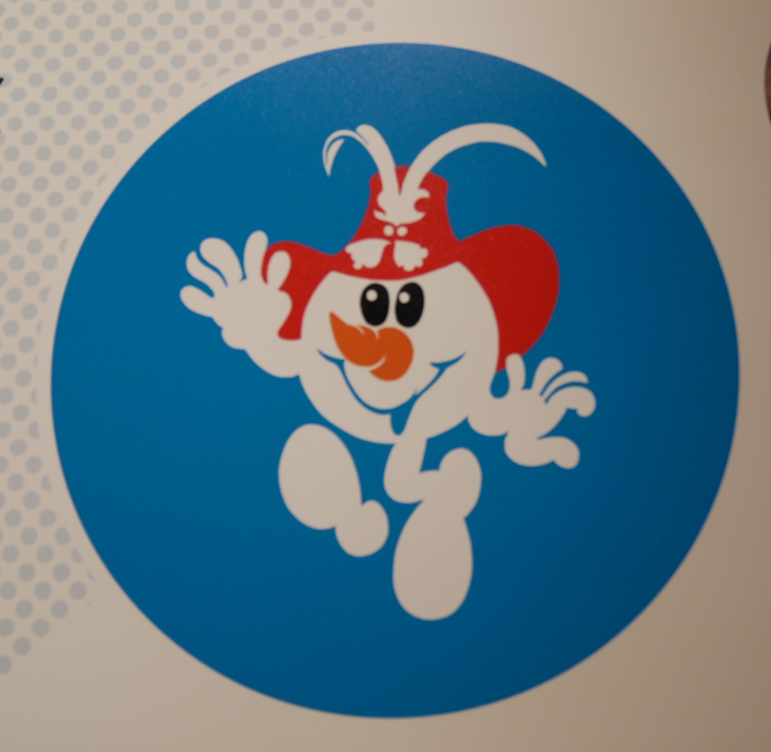 スキーに乗った人間をモチーフとしたキャラクターで、デザイナーのアリーン・ラファルグが一晩で作り上げたそうです。