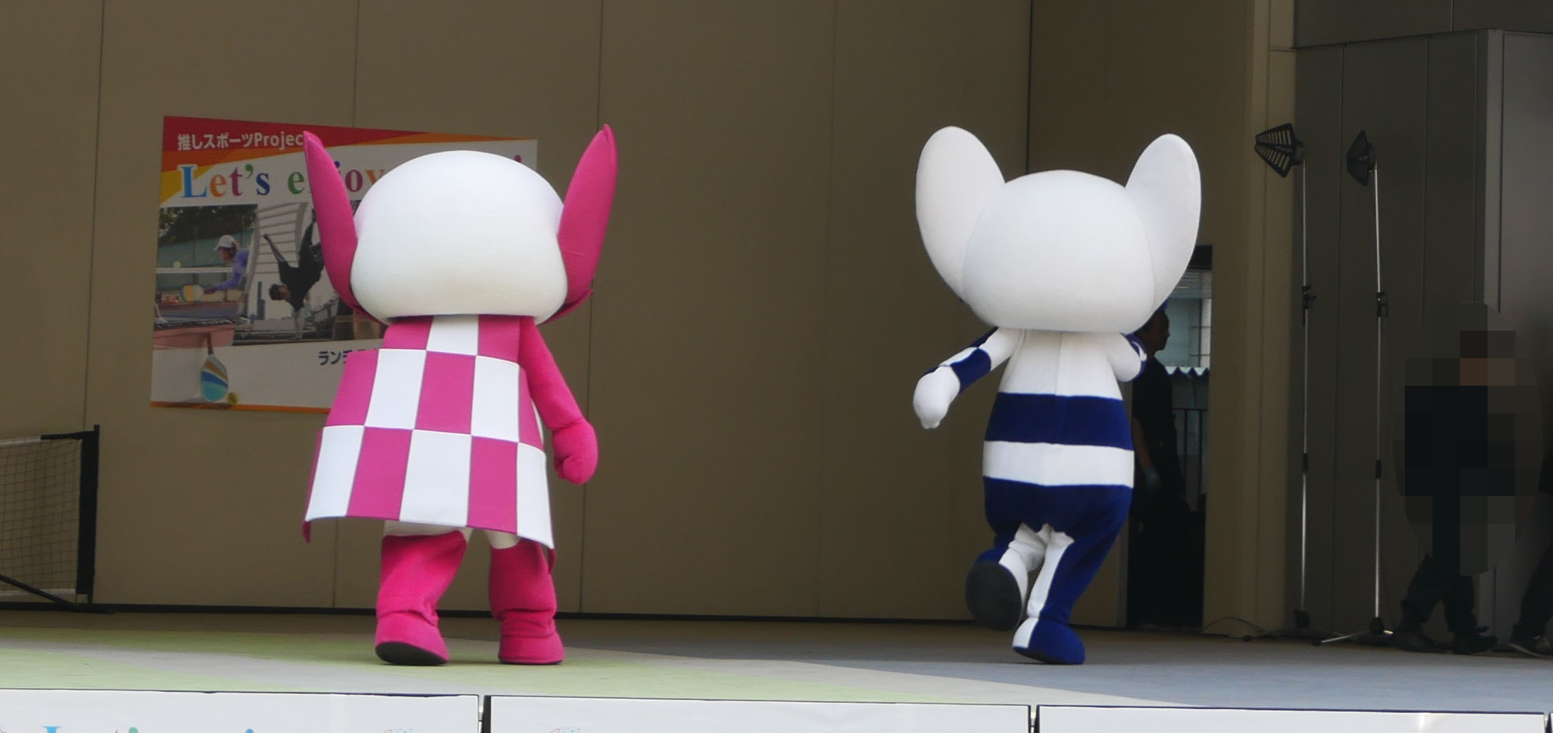 こちらの写真は、2025年に東京都庁で開催された、「推しスポーツProject Let’s enjoy sports!」より、「ミライトワ」と「ミソメイティ」の登場です。