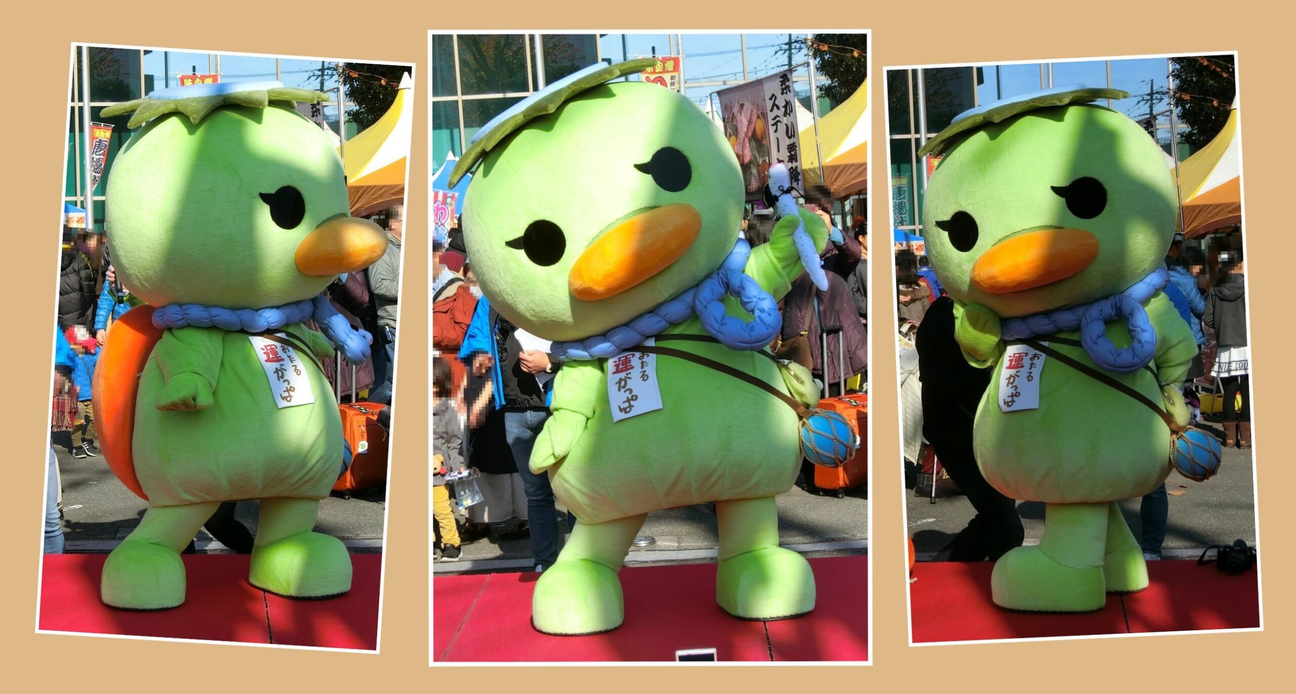 こちらの写真は、2017年に埼玉県志木市で行われた、「第10回 志木市民まつり カッパだよ!全員集合!!」より、「おたる運がっぱ」の登場です。