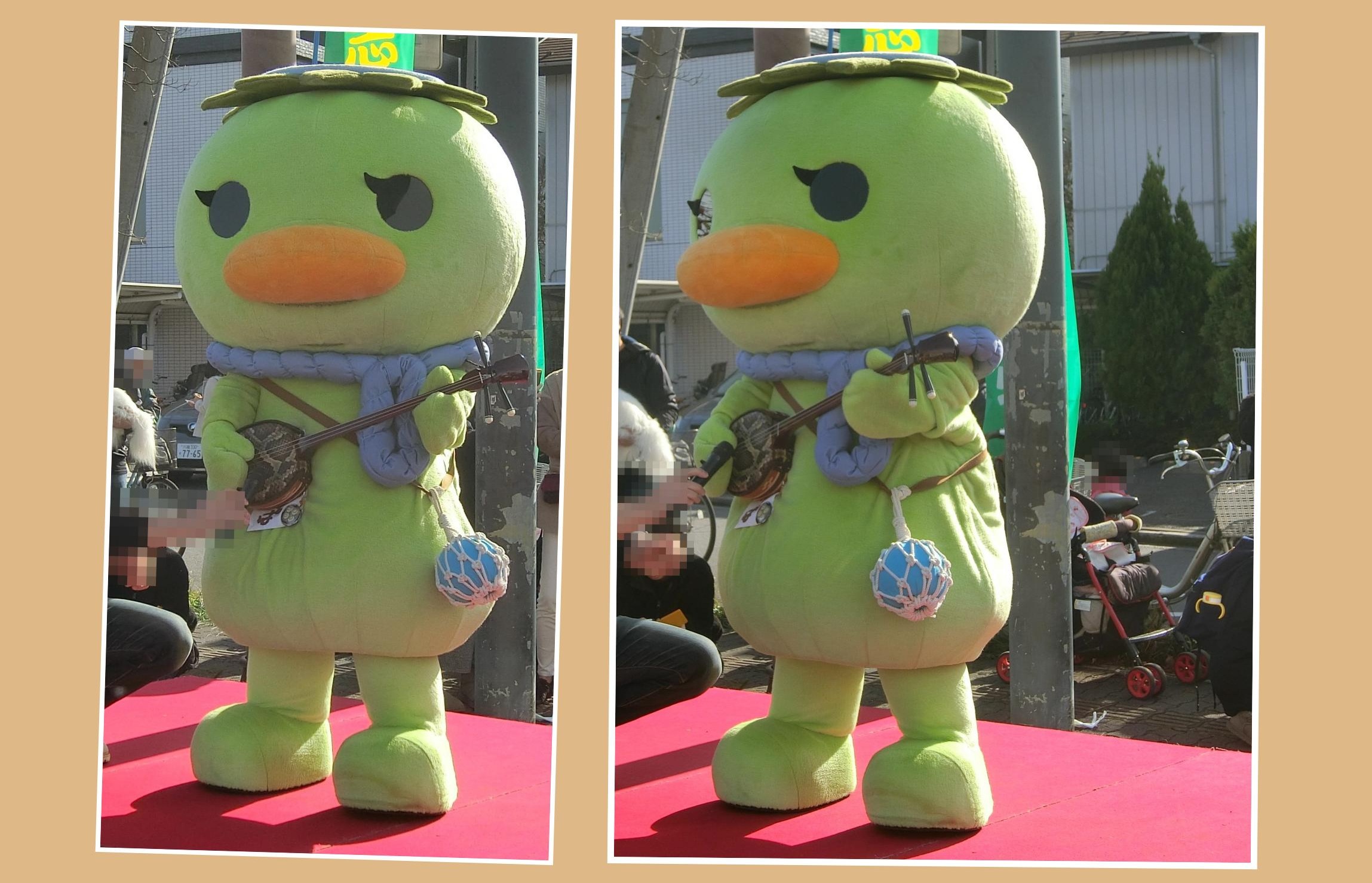 こちらの写真は、2019年の「第12回 志木市民まつり カッパだよ!全員集合!!」からの写真です。三線を演奏する「おたる運がっぱ」です。