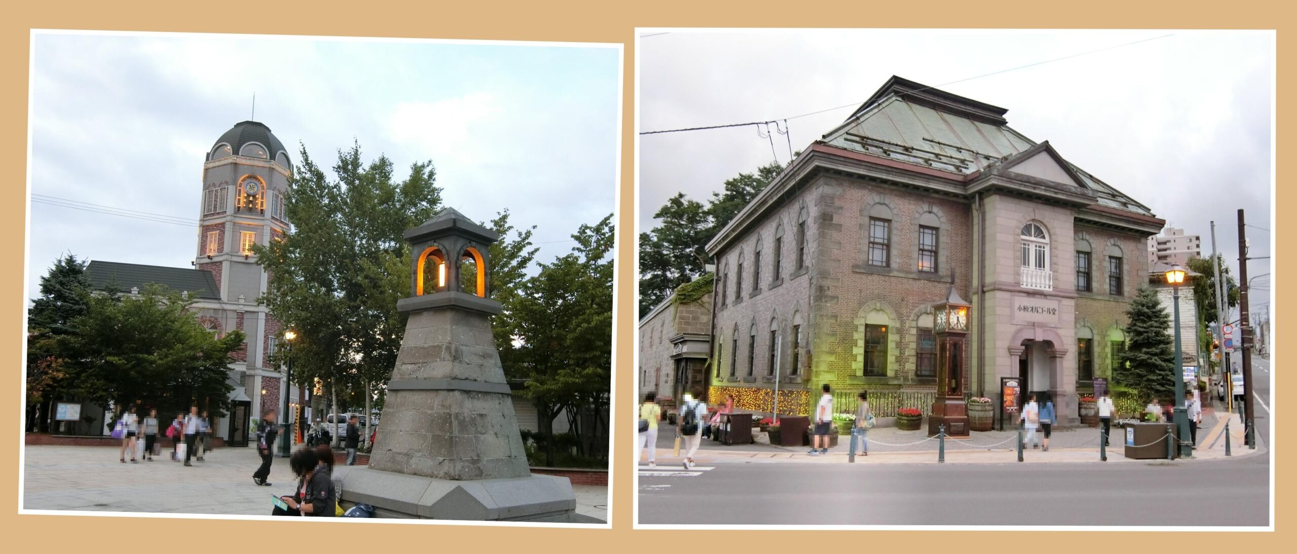 (左側)小樽には、小樽運河の他にメルヘン交差点という観光名所があります。後ろに見えるのは、あのルタオ本店です。(右側)この建物は、大正2年に建てられた有名な観光名所「小樽オルゴール堂」です。せっかくなので、中に入ってみました。(^o^)