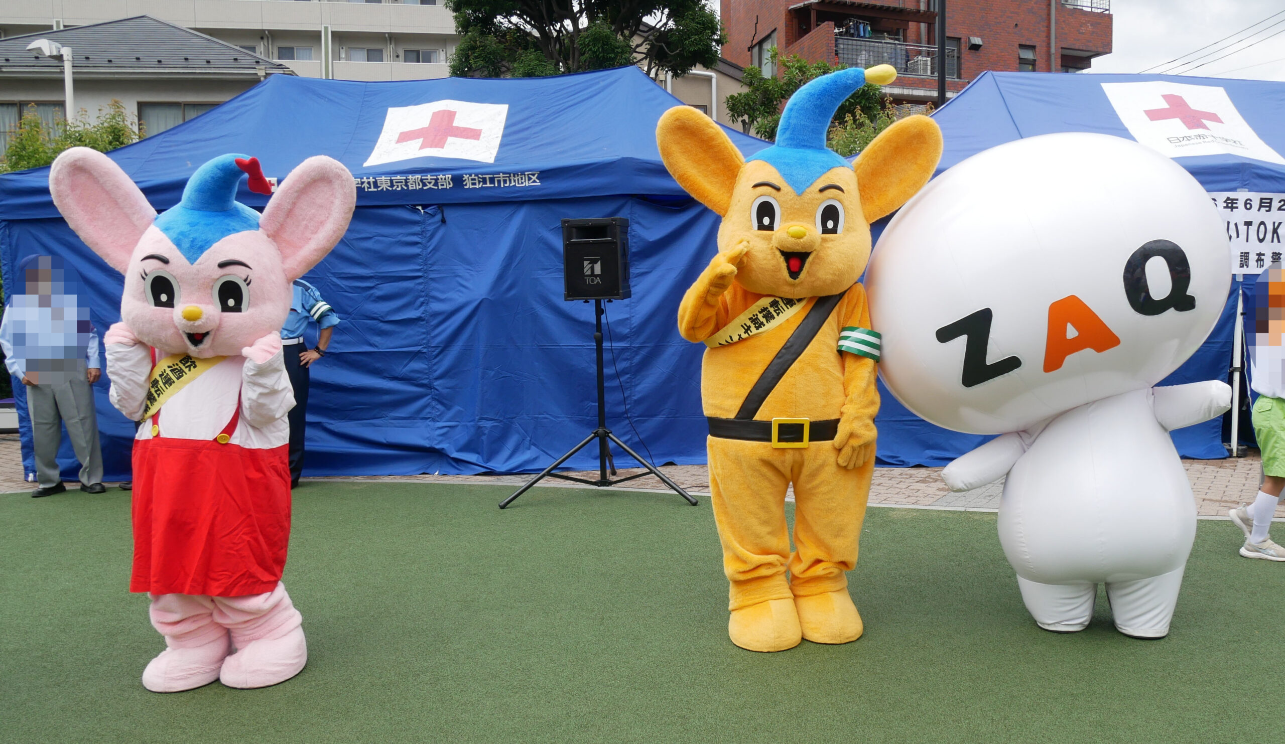 (左側の)「キュータ」(東京消防庁)、(右側の)「きゅんた」(小田急バス)とのコラボです。