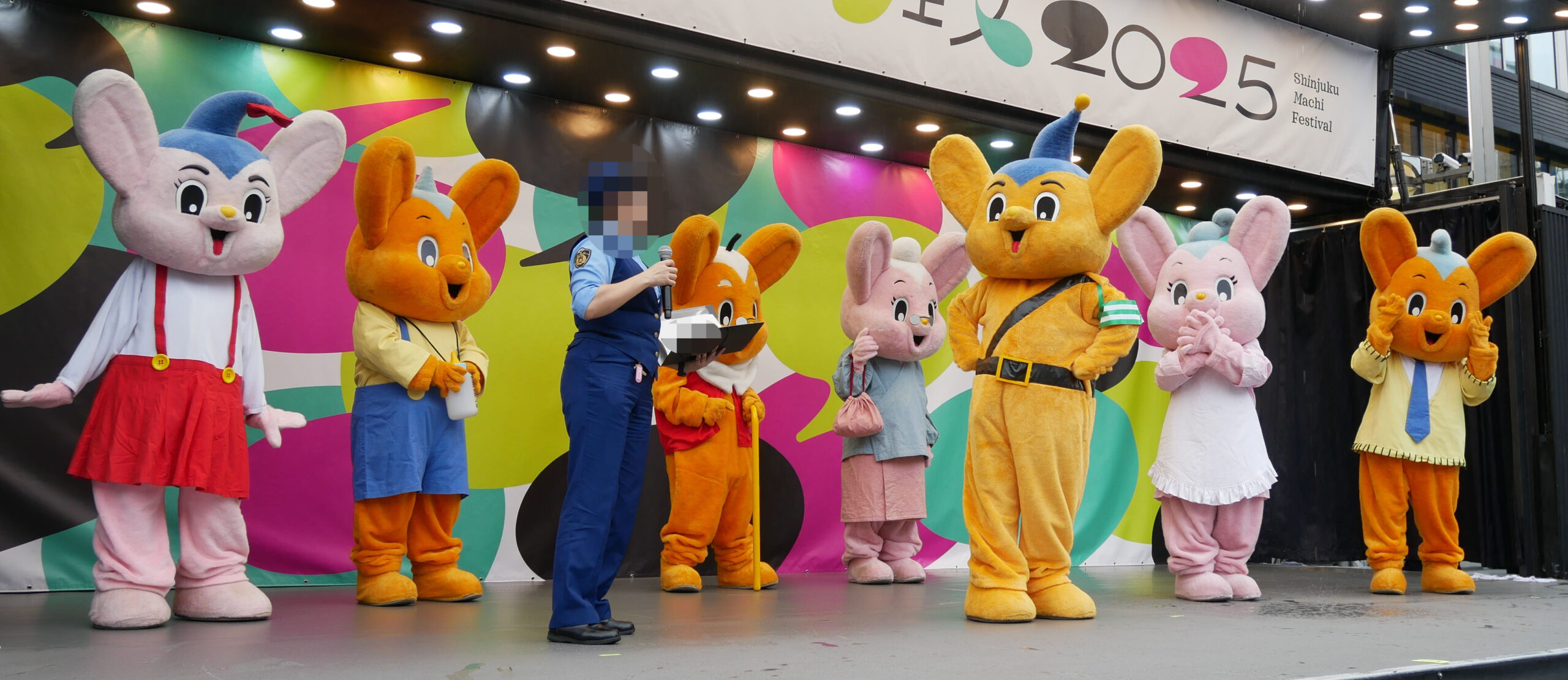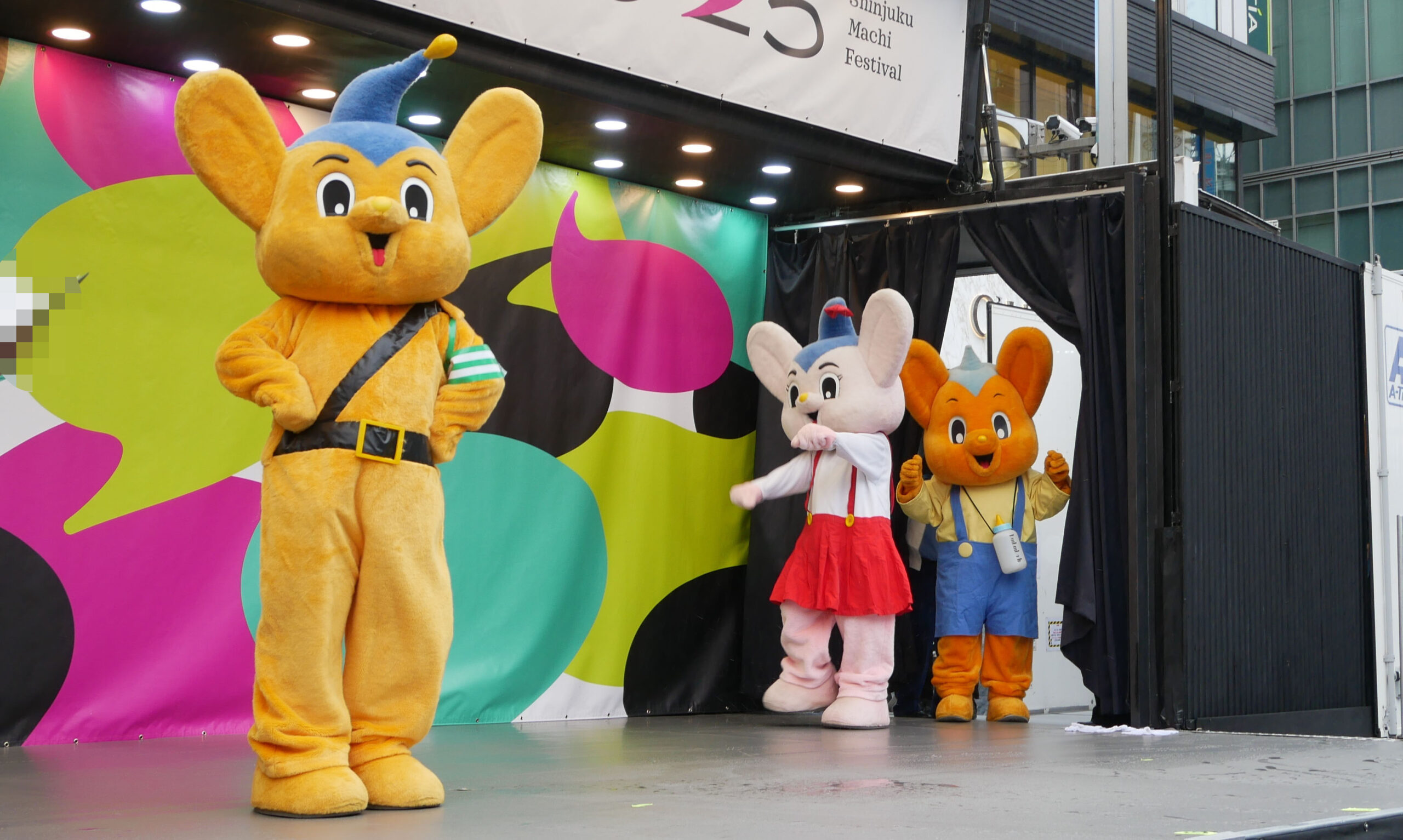 こちらの写真は、2025年に東京にある新宿駅東口前特設ステージ(旧アルタ前)で開催された「新宿まちフェス2025」より、「ピーポくん」の登場です。続いて登場するのは。。