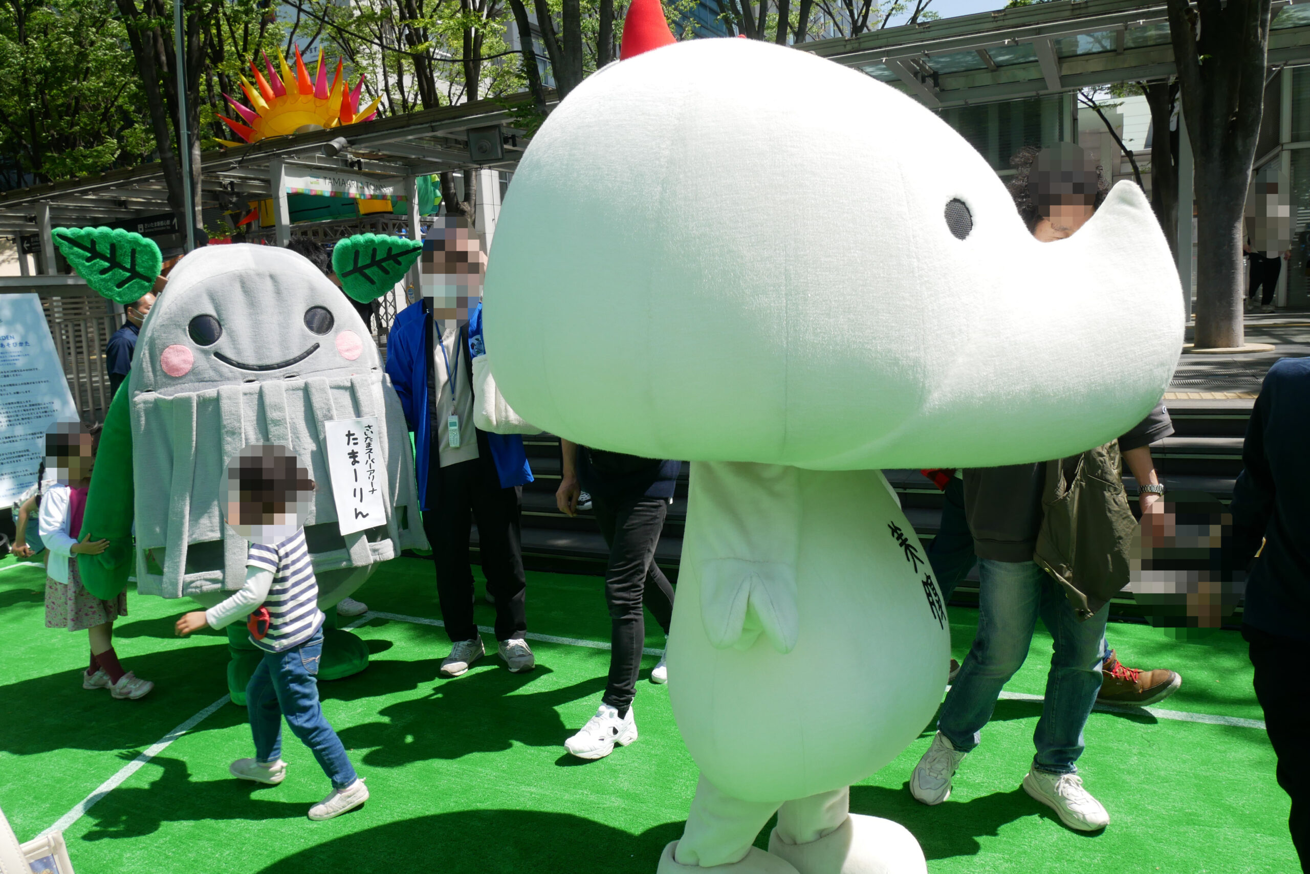 こちらの写真は、2024年に埼玉県羽生市で開催された「世界キャラクターさみっと in 羽生」より、(右側の)「こいのぼりん1世」と(左側の)「こいのぼりん2世」の登場です。