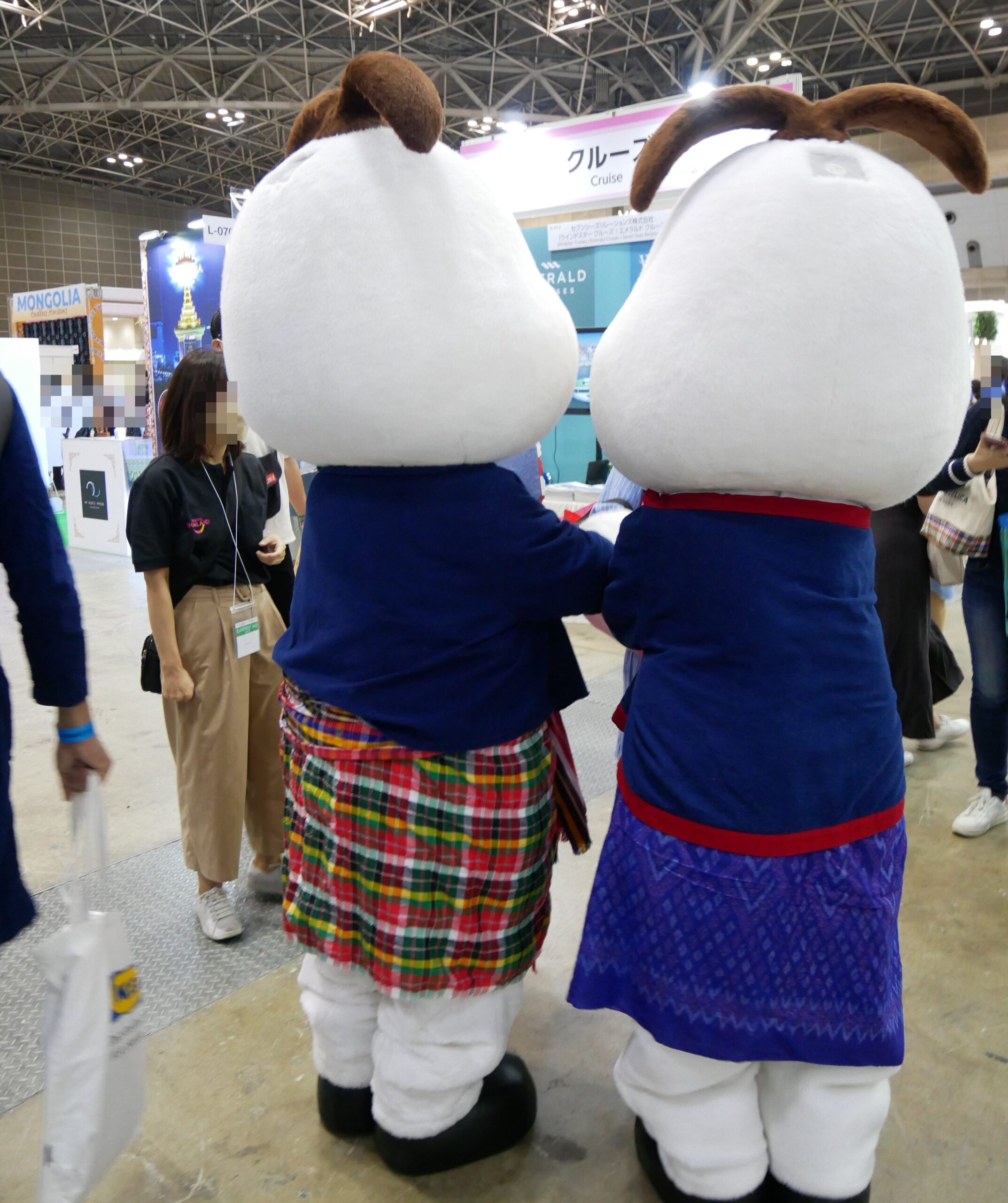 こちらの写真は、2022年に東京ビッグサイトで開催された「ツーリズムEXPOジャパン」より、「ハッピーちゃん」の登場です。なぜか2体いますが、兄弟なのか?仲間なのか?公式サイトにも説明が見当たりませんでした。何か分かればこの記事を更新します。