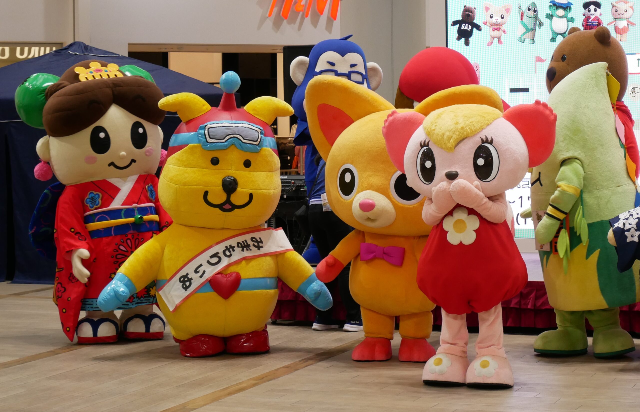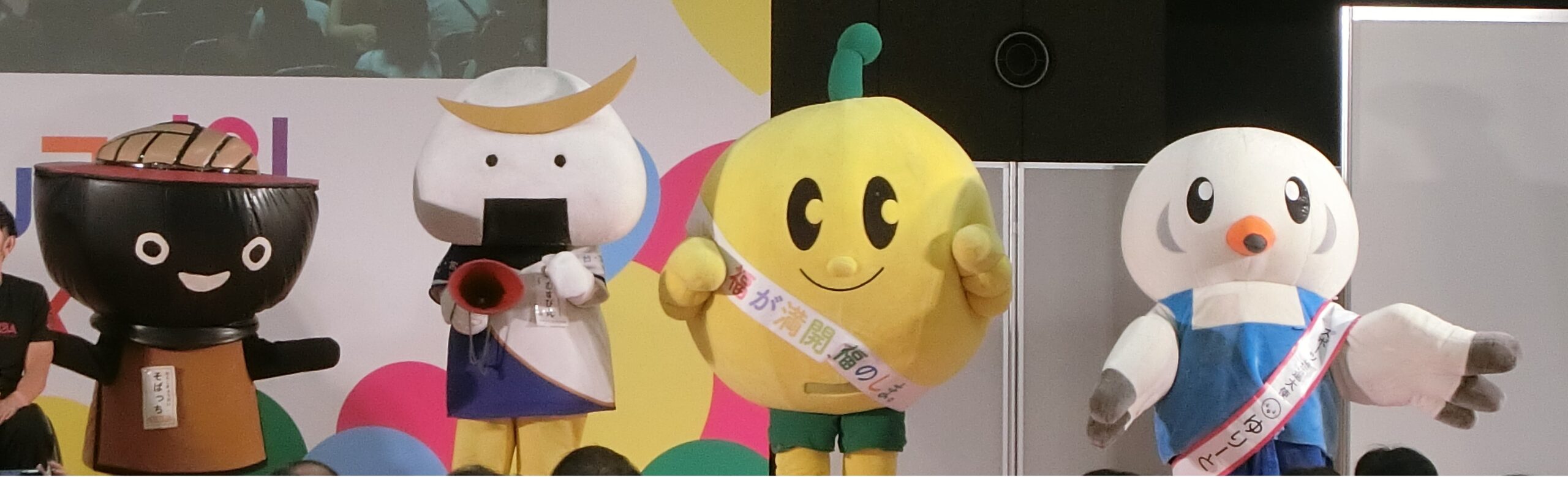 こちらの写真は、2017年に東京の国際フォーラムで開催された「チャレスポ!TOKYO」より、(右側より)「ふなっしー」(千葉県船橋市)、「くまモン」(熊本県)とのコラボです。
