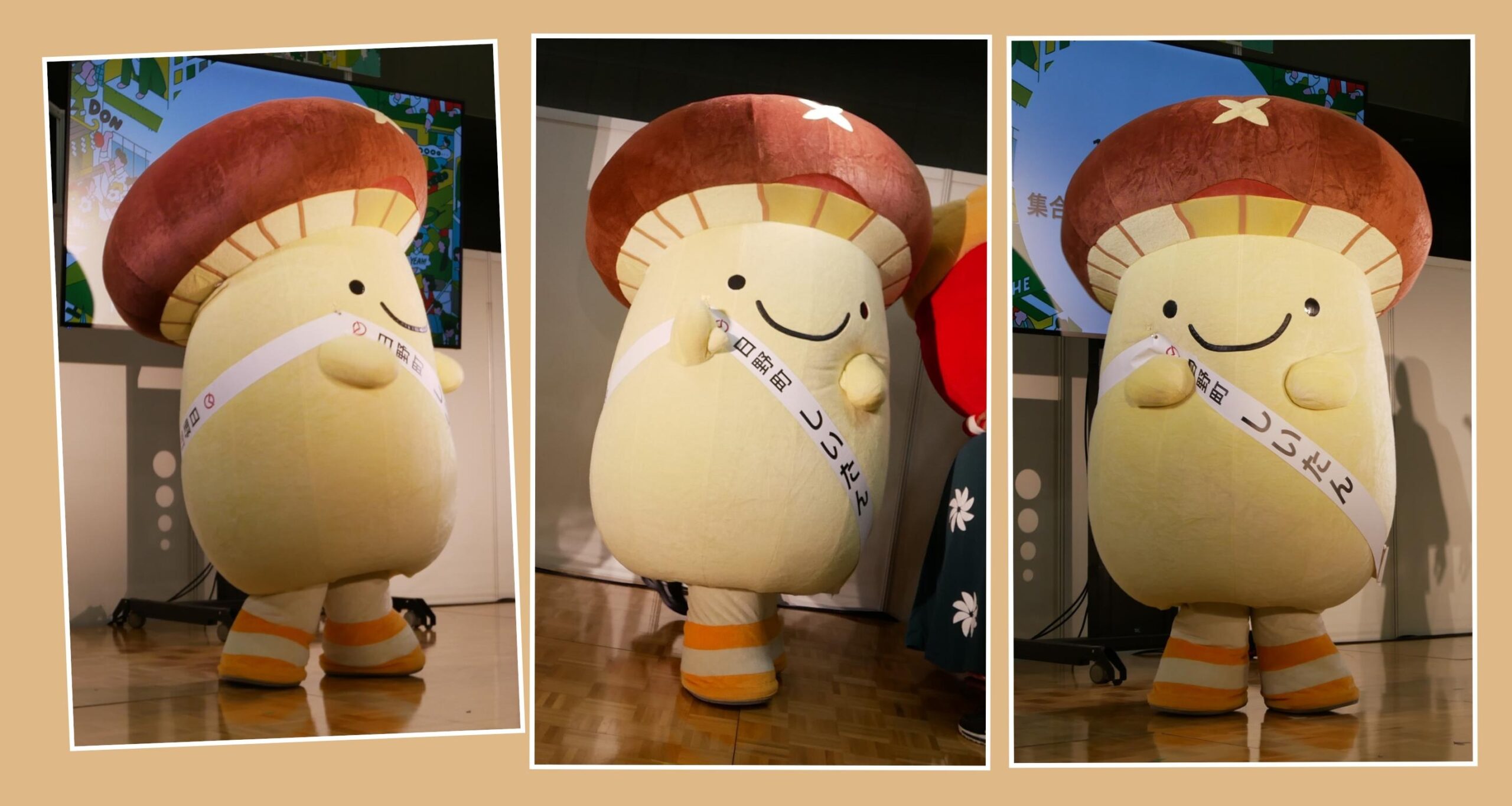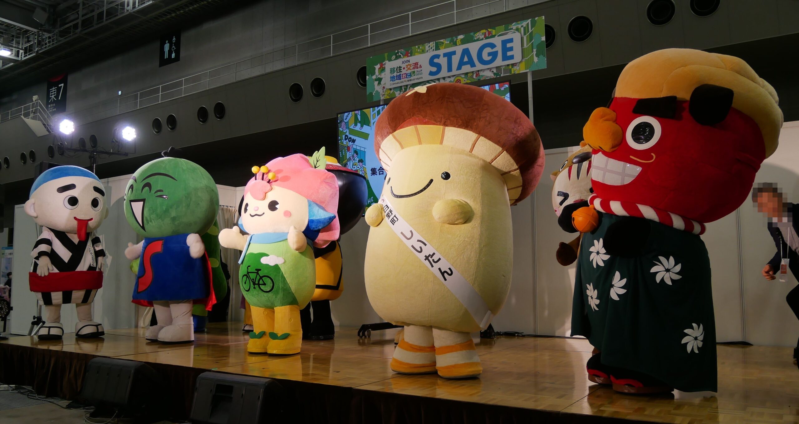 こちらの写真は、2025年に東京ビッグサイトで開催された「JOIN 移住・交流&地域おこしフェア2025」より、「しいたん」の登場です。