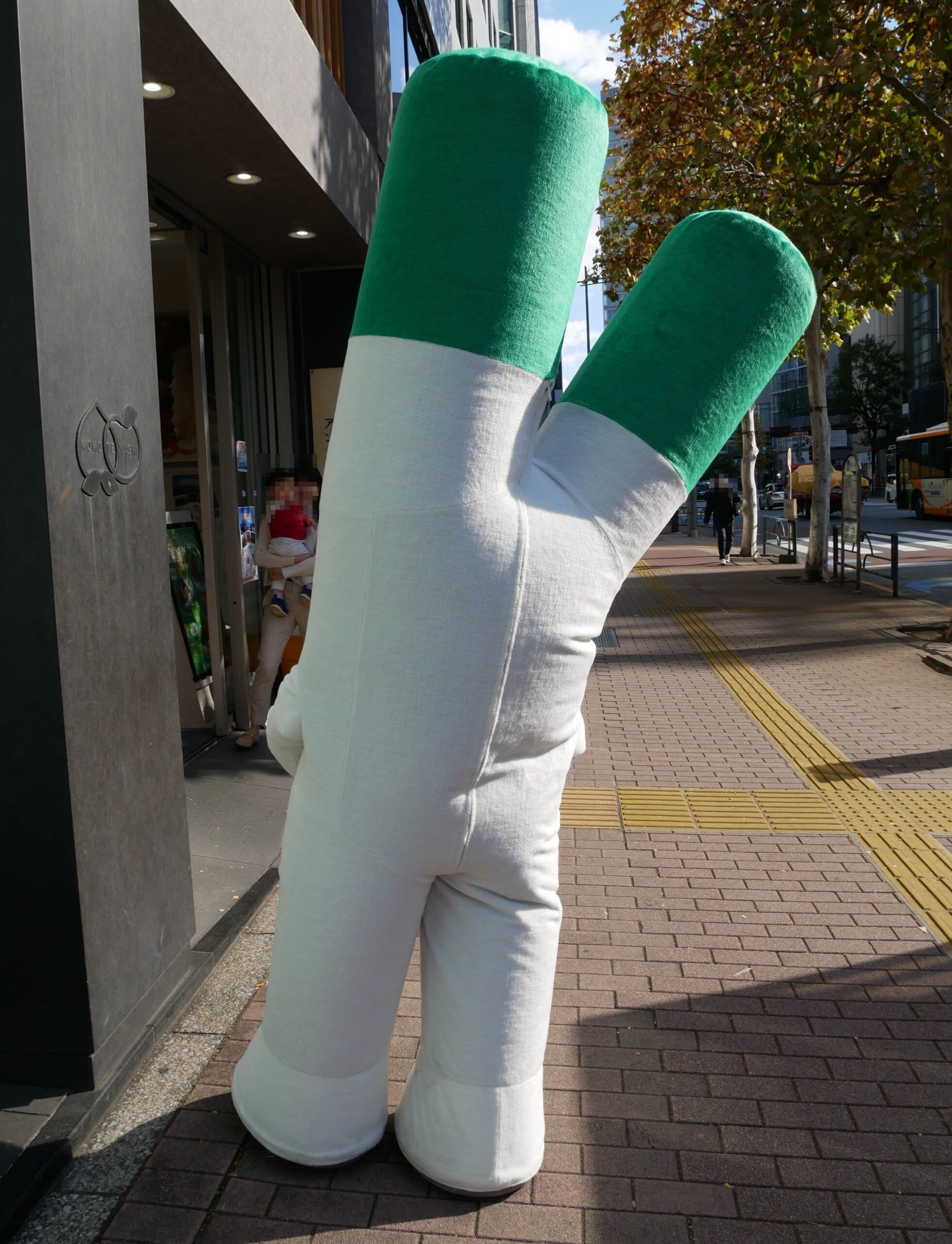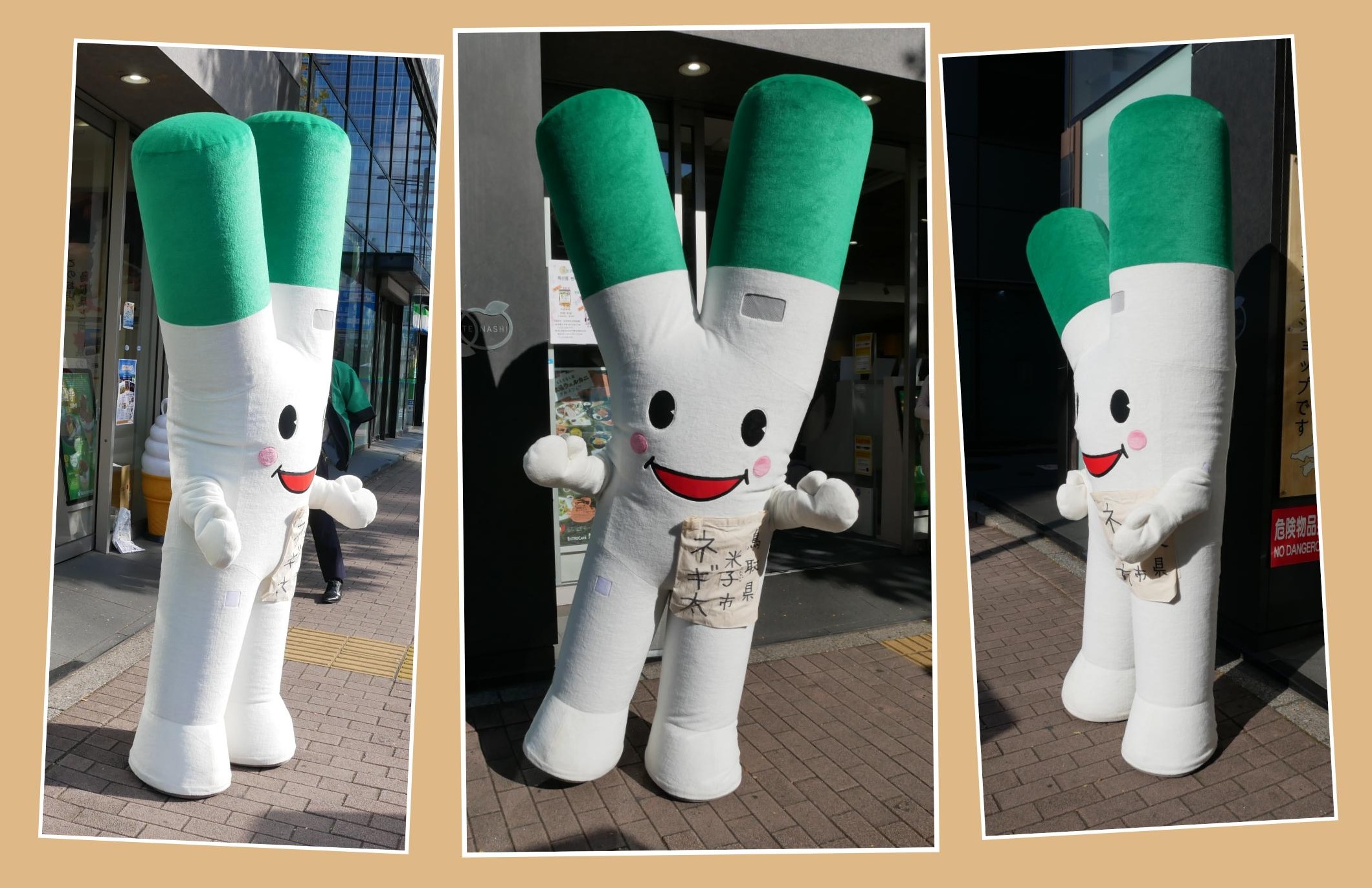 こちらの写真は、東京新橋にある、とっとり・おかやま 新橋館で開催された「米子市フェア」より「ヨネギーズ」の「ネギ太」の登場です。