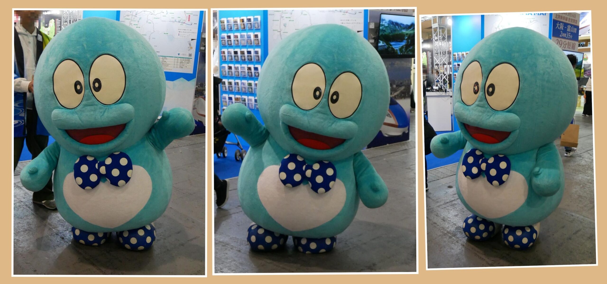 こちらの写真は、2024年に東京ビッグサイトで開催された「ツーリズムEXPOジャパン2024」より、「ジャンボ~ル三世」(富山県下新川郡入善町)との富山県キャラクター同士のコラボです。