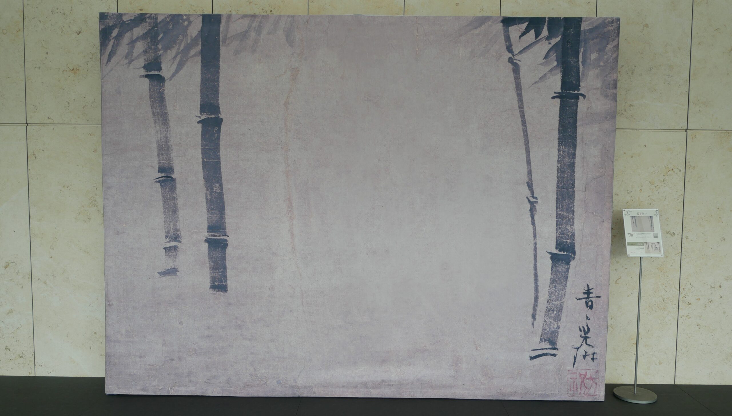 また、「トラりん」のモデルである尾形光琳の「竹虎図」は、この博物館の重要文化財の為、普段は展示されておらず、特別展などの特別な日のみの展示されるそうです。以前はロビーに「竹虎図」のレプリカが展示されていたそうですが、今は展示されていませんでした。しかし、虎のない「竹虎図」(抜け虎図と呼ばれているそうです。(^^))展示されていました。(こちらは写真撮影OKでした。)