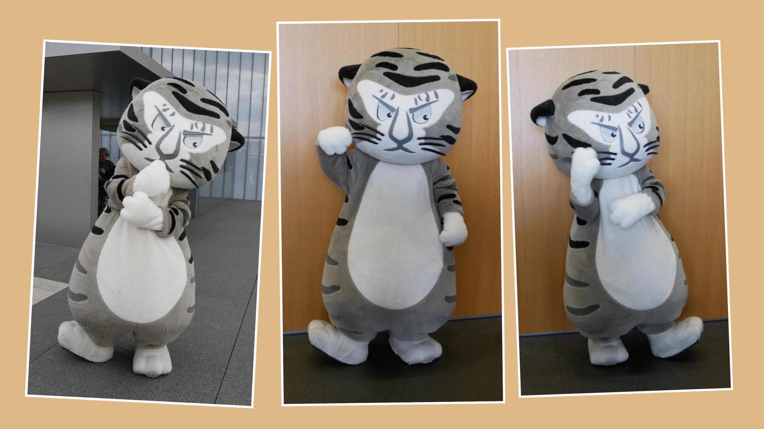 「トラりん」のポーズ集です。著者が気に入った写真を3枚厳選しました。