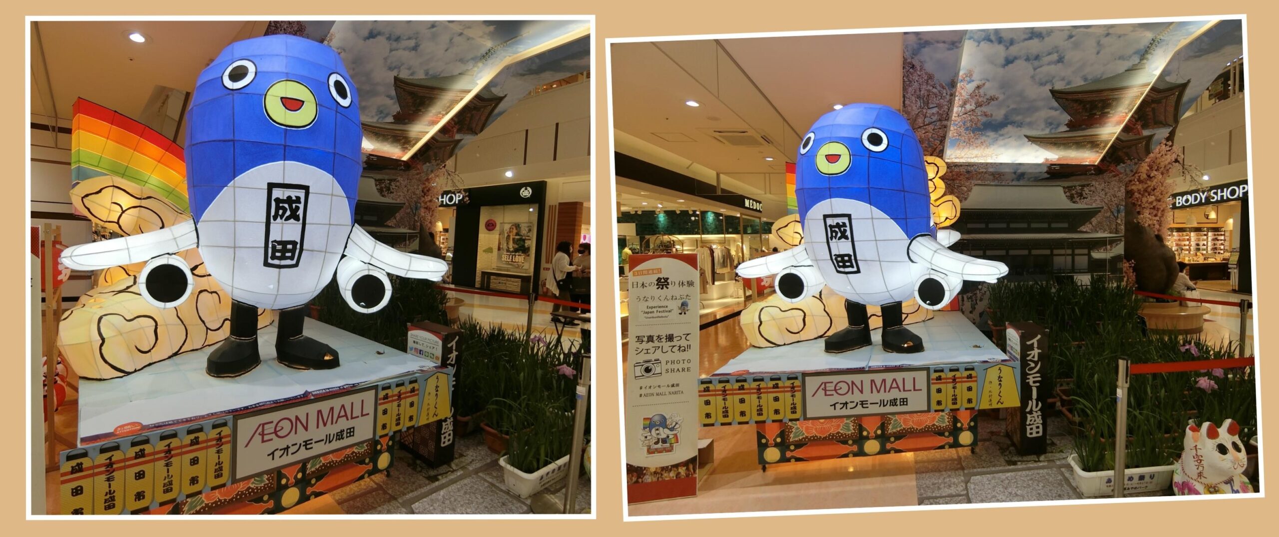 こちらの写真は、2021年にイオンモール成田で開催された、「成田空港開港記念フェア がんばろう成田空港」より、「うなりくん」の登場です。