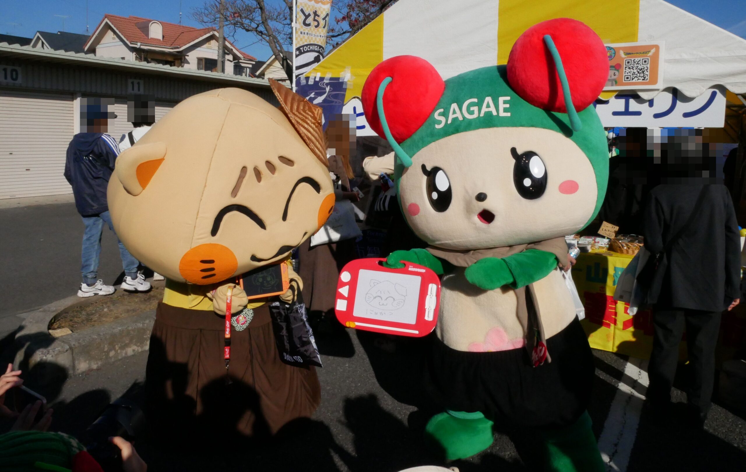 こちらの写真は、2025年に埼玉県羽生市で開催された「世界キャラクターさみっと in 羽生」より、(左側の)「和み柴っこ」(京都府京都市)、(右側の)「キララちゃん」(京都府京田辺市キララ商店街)とのコラボです。