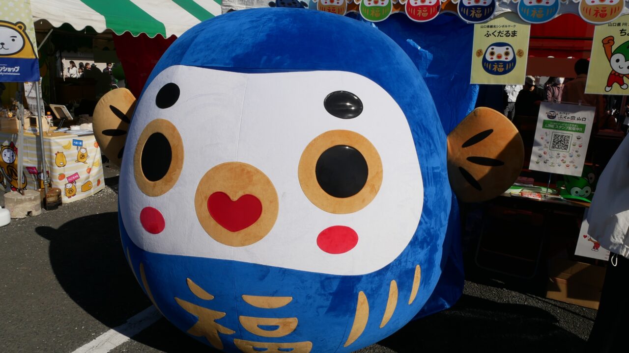 こちらの写真は、2025年に埼玉県羽生市で開催された「世界キャラクターさみっと in 羽生」より、「ふくだるま」の登場です。